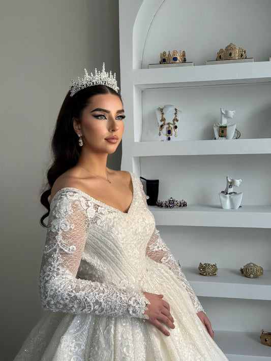 Robe blanche sirène avec surjupe 2m60 attachable à la taille