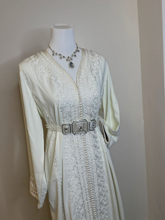 Takchita blanc cassé perlé argenté